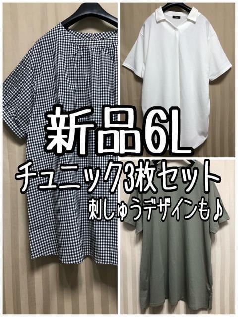 - 新品☆6L♪半そでチュニック3枚セット♪吸汗速乾や刺しゅうデザインも♪☆x637