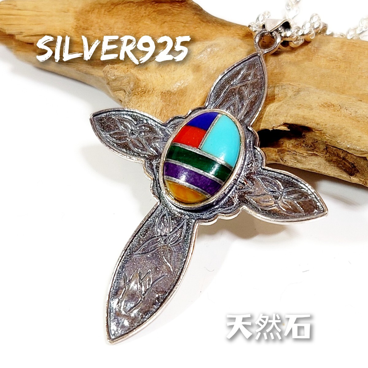 > 6210 SILVER925 ズニ クロストップ シルバー925 天然石 十字架 インレイ ターコイズ コーラル ラピス インディアンジュエリー ケルティック