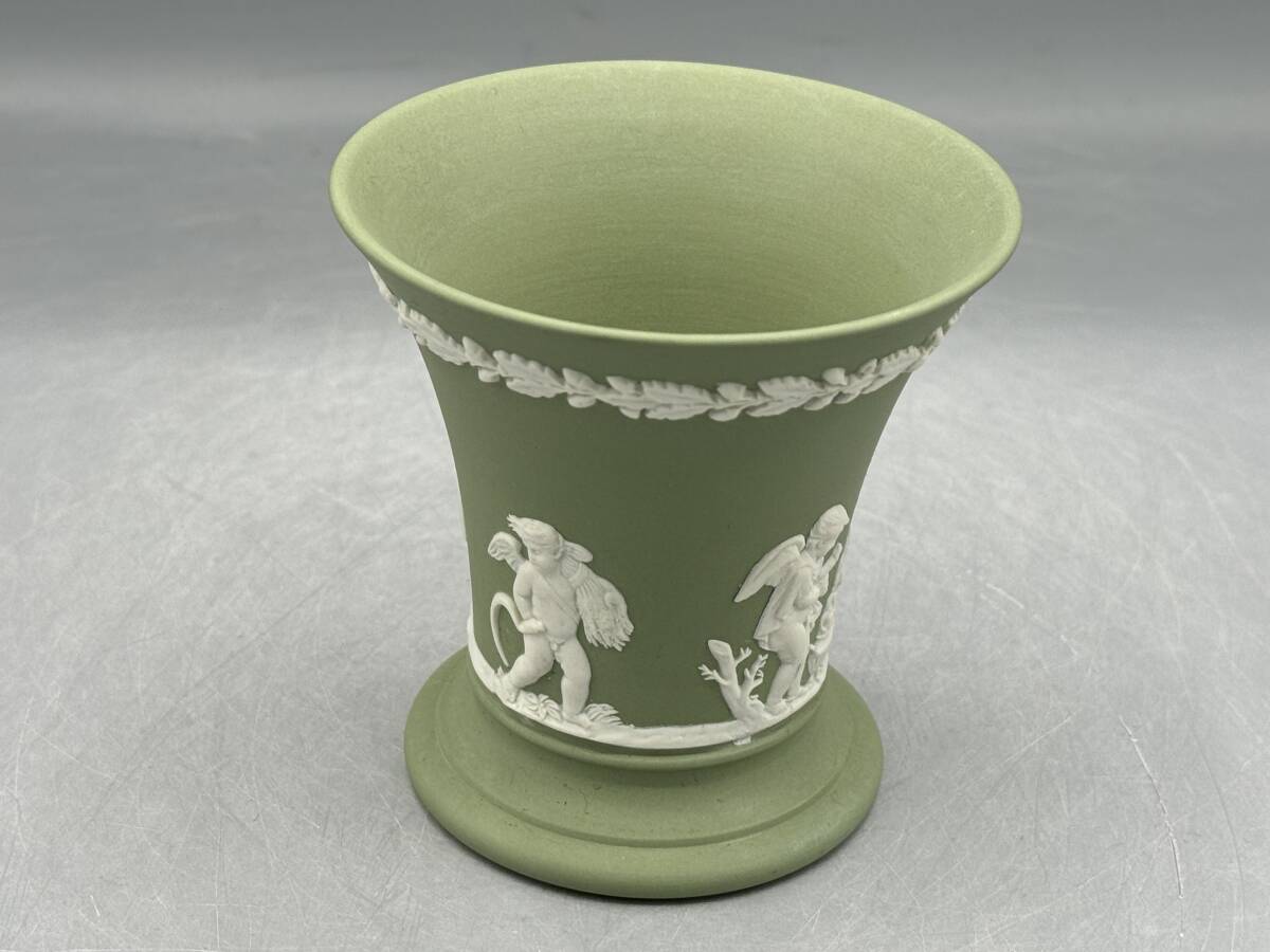 > 英国 ウェッジウッド ジャスパーウェア セージ グリーン 花瓶 フラワーベース ジャスパー (777)