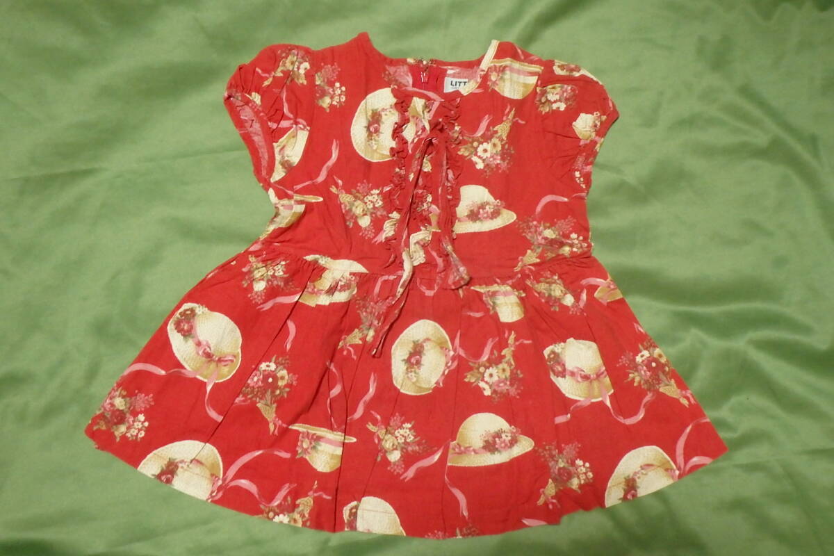 - 古着■■LITTLE WE 子供服女の子用ブラウス ワンピース レッド サイズ100