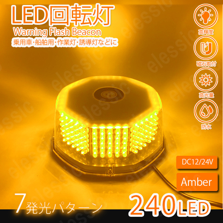 - LED 回転灯 240LED 12V24V 丸型 ビーコン 橙色 オレンジ パトランプ フラッシュライト 警告灯 作業灯 除雪作業灯 7パターン 防水加工