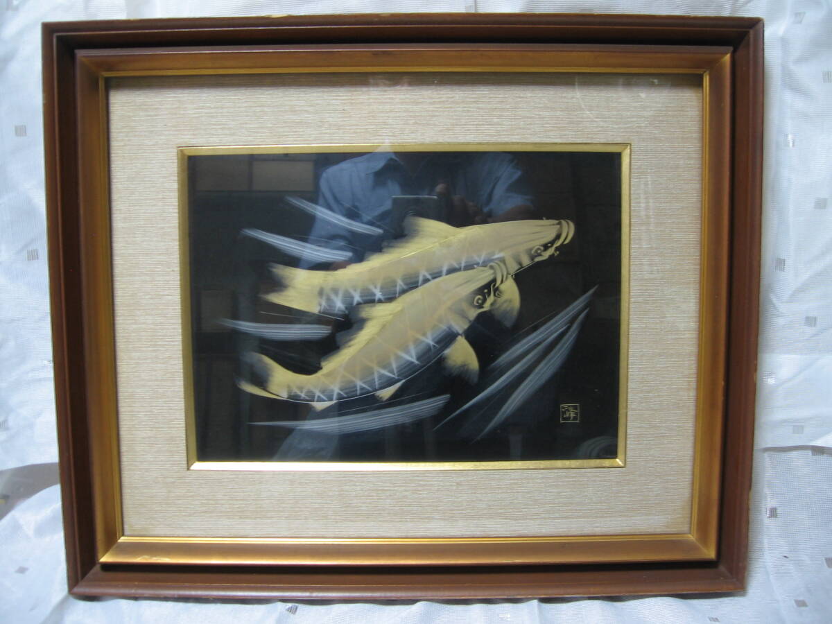 - 樽見西峰 作☆漆絵☆双鯉☆大丸美術部シール付き