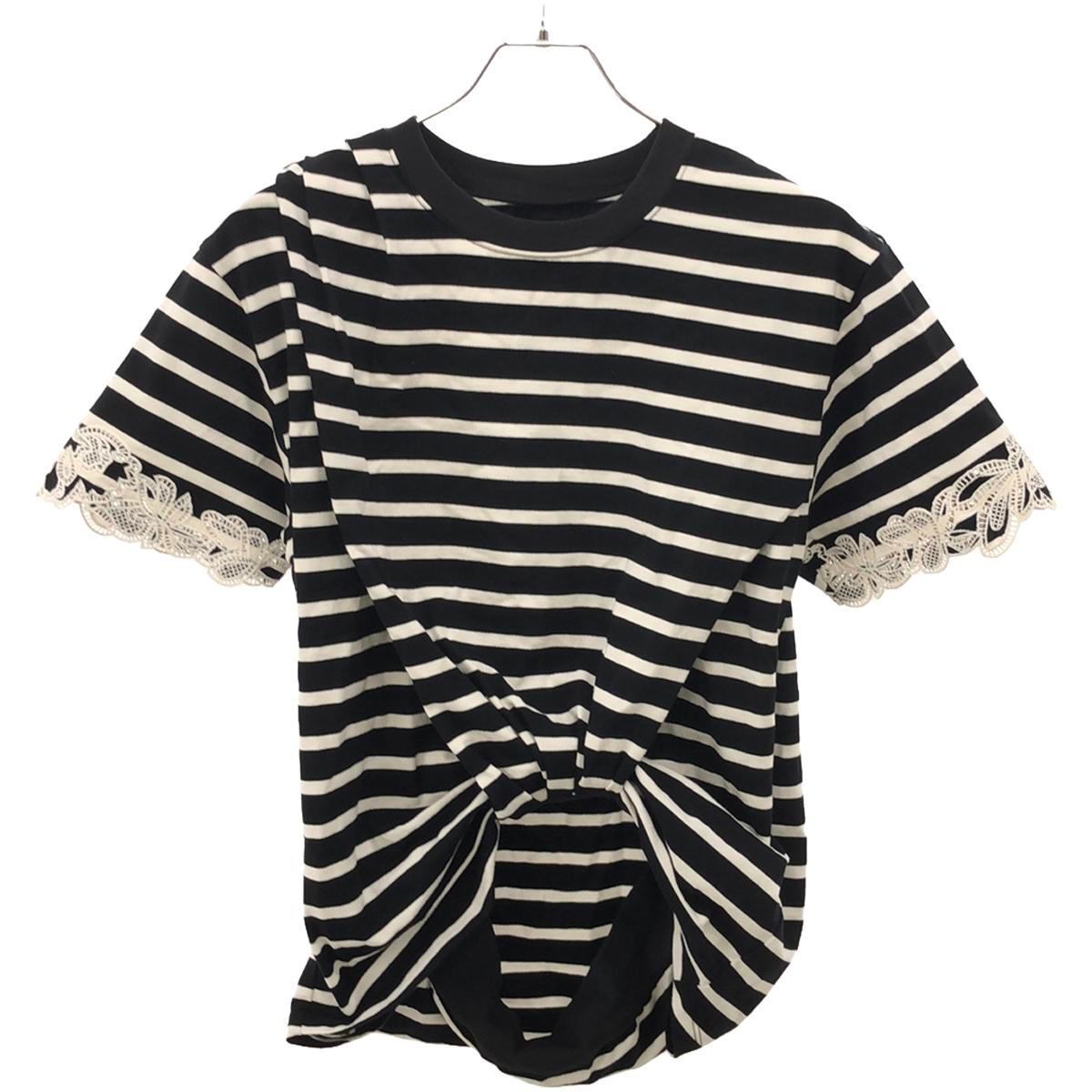 - 3.1 Phillip Lim スリーワンフィリップリム 24SS Draped Tee with Lace Embroidery ボーダーTシャツ S242-10163PJE ブラック×ホワイト XS