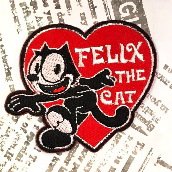 - ワッペン【 FELIX フィリックス ハート 】#611 ハンドメイド 刺繍 アメリカン雑貨 手芸 カスタム オシャレ アイロン アメキャラ ねこ