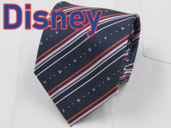 - 【ディズニー】 OD 177 ディズニー Disney ネクタイ 紺系 ストライプ キャラクター ジャガード