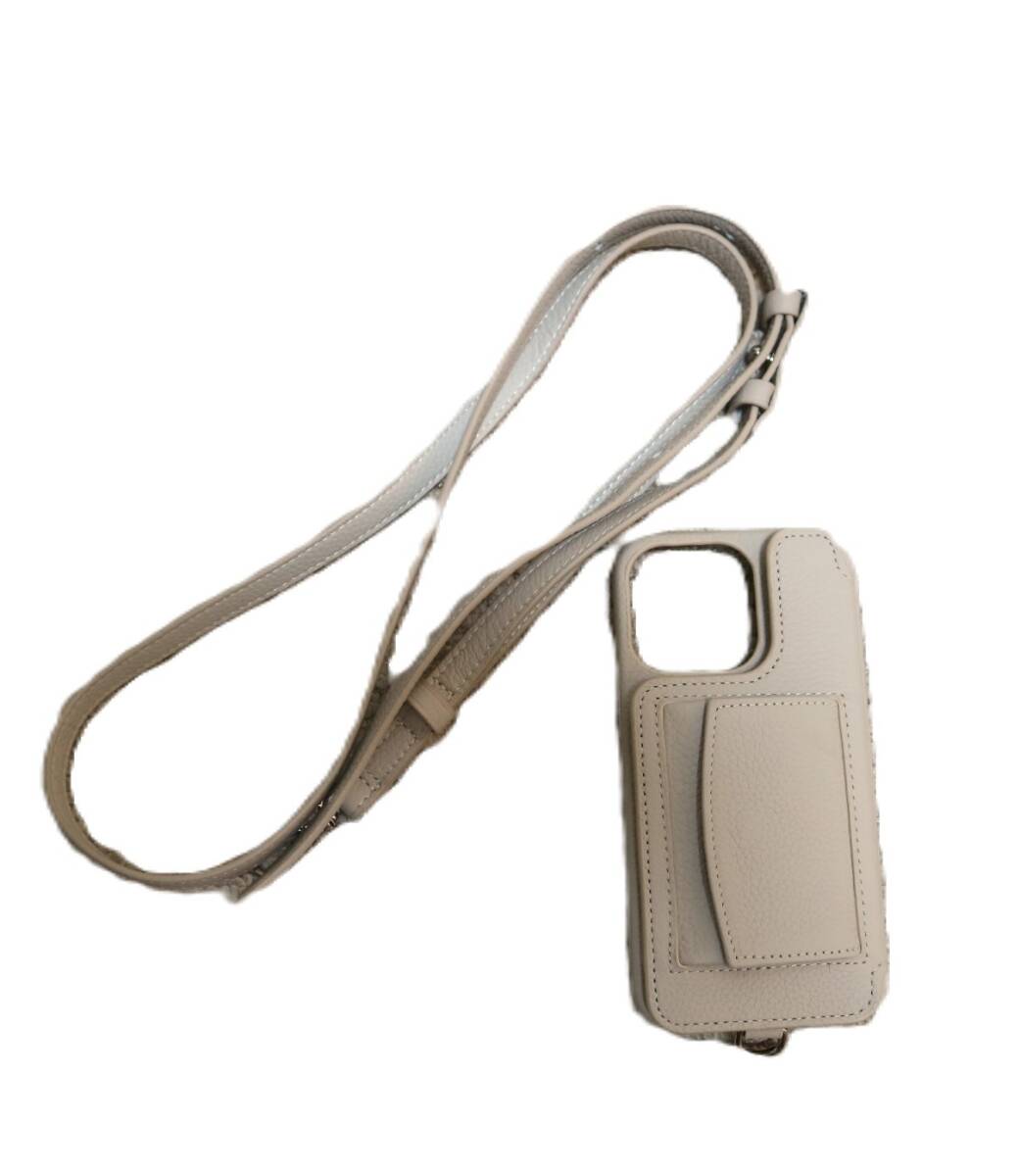 - 即決】未使用 Demiurvo デミウルーボ◆iPhone スマホ ケース×ネック ストラップ ショルダー付 レザー ベージュ 小銭入 カードケース
