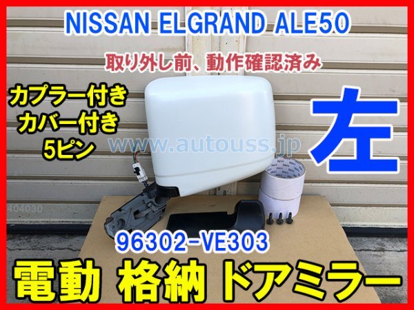- NISSAN ELGRAND エルグランドALE50 左 純正電動格納 ドアミラー MURAKAMI 5672 5ピン 96302-VE303 ホワイトパール QX1 動作確認済み 即決