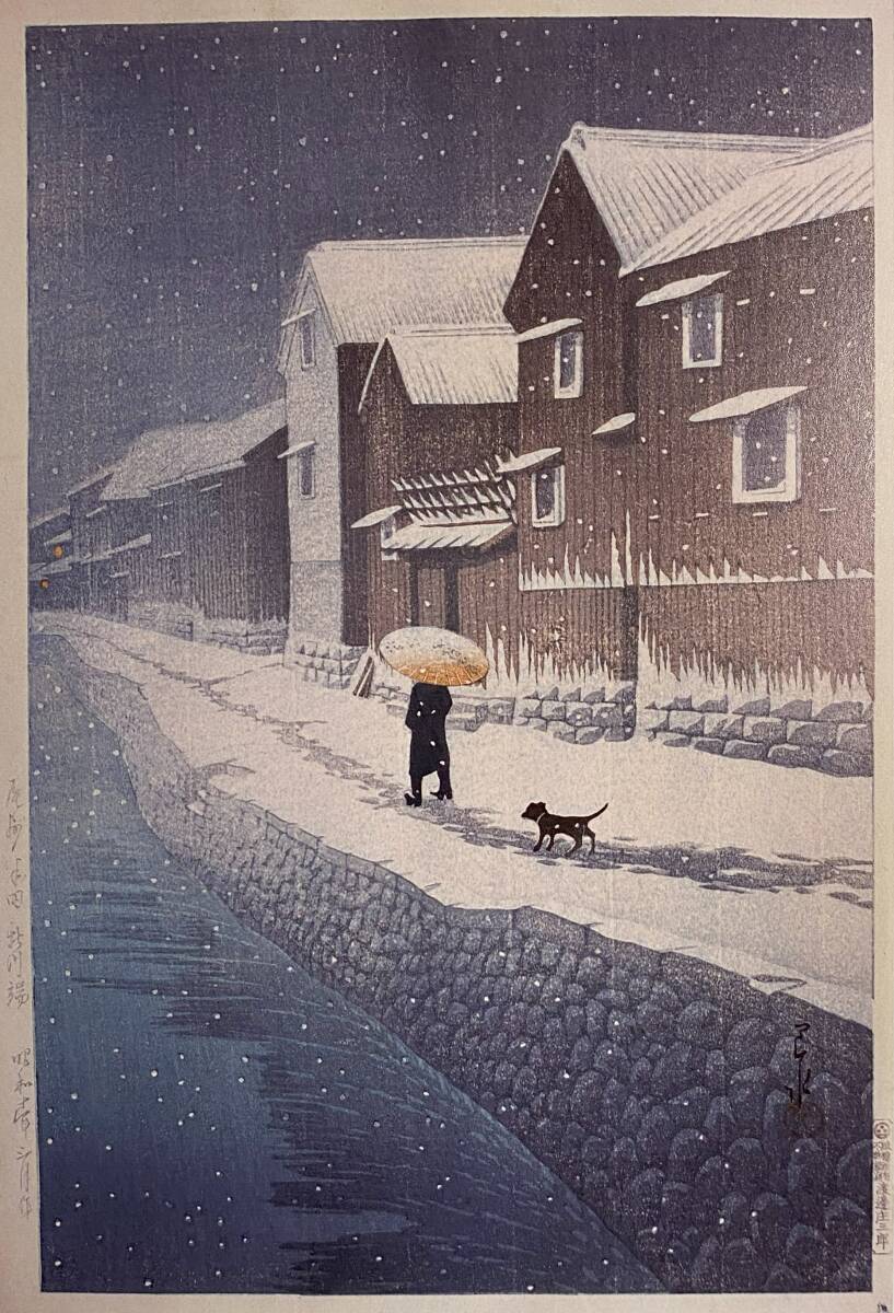 - 川瀬巴水、〈尾州半田新川端 東海道風景選集〉、希少画集画、高級新品額・額装付、状態良好、送料込み