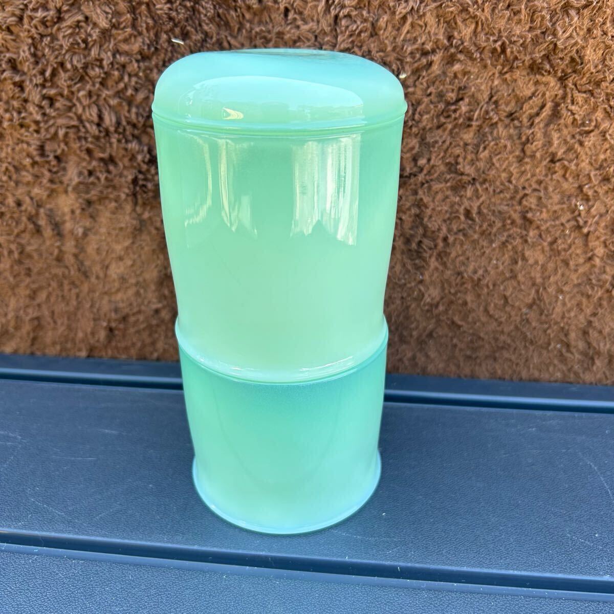 - 資生堂 コットンポット 硝子 小物入れ ガラス瓶 当時物 レトロ 綺麗な緑 ミルクガラス ガラスポット インテリア 化粧道具 SHISEIDO