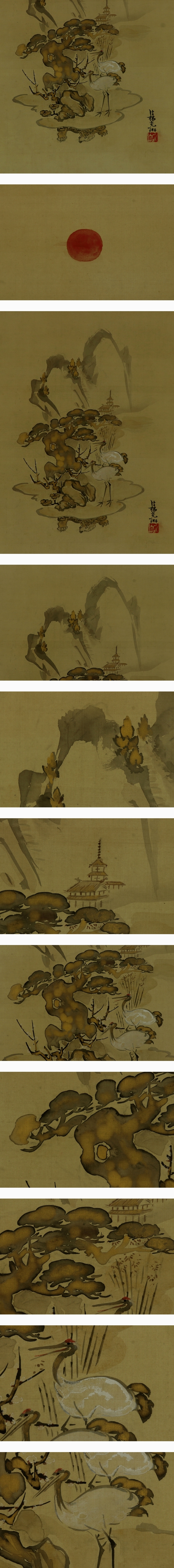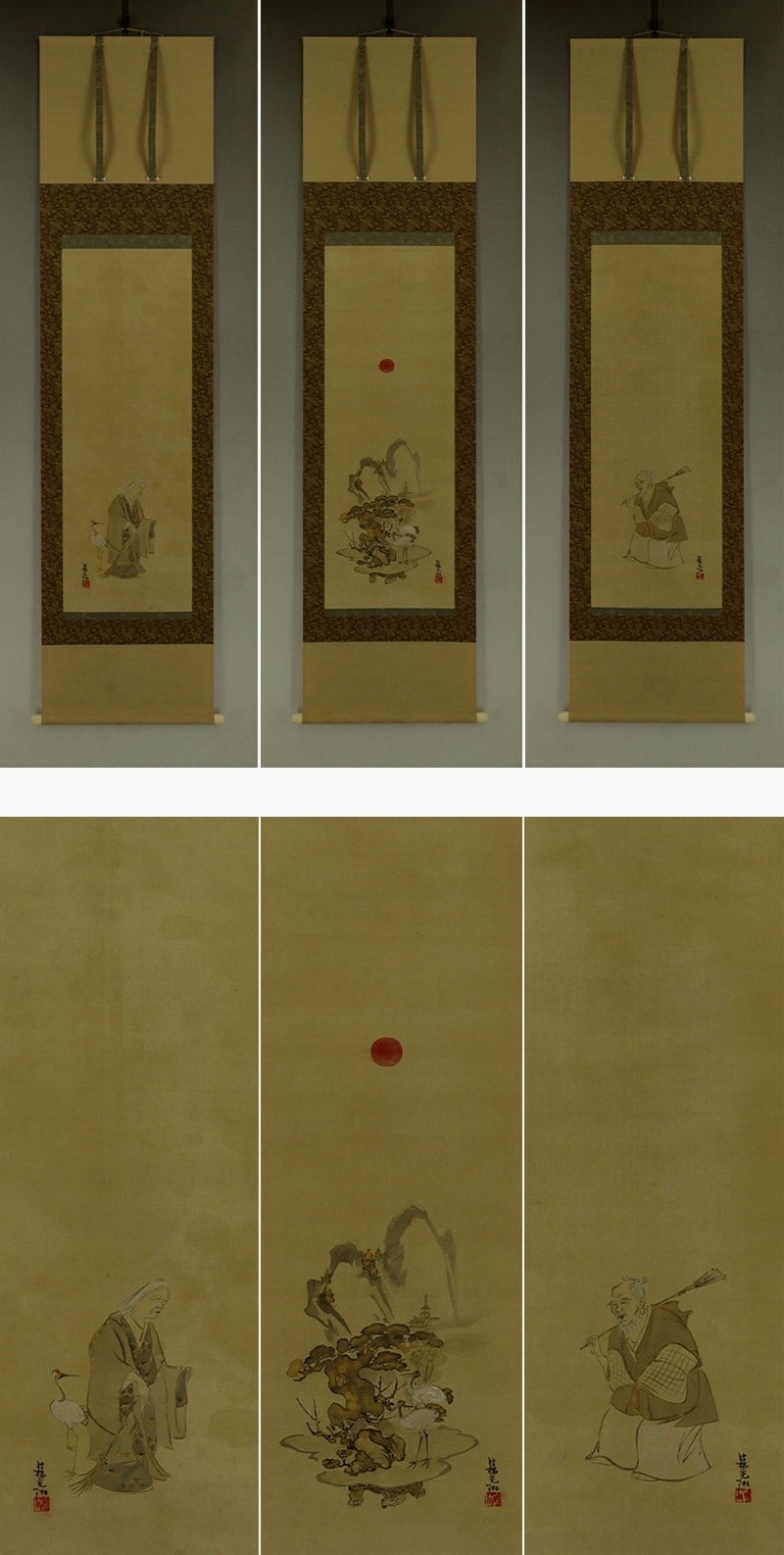 - 【模写】尾形光琳【三対幅・慶祝図】◆絹本◆合箱◆改装済掛軸 u10026