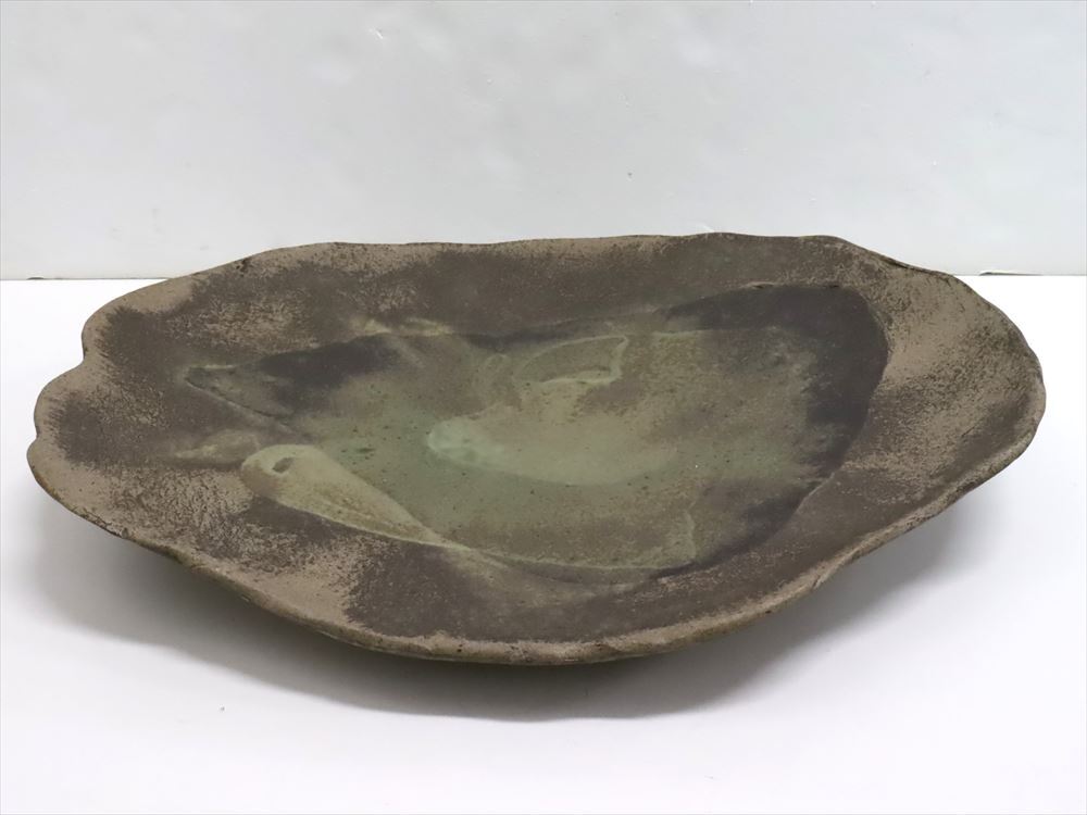 - 【No1287蔵出し】 『 もくせい窯 井内芳樹 焼締め皿 共箱 骨董品 アンティーク』