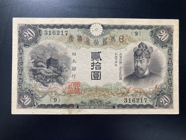 - 【注目/珍品/レア/希少/貴重】藤原鎌足 20円札 縦書き 20円札