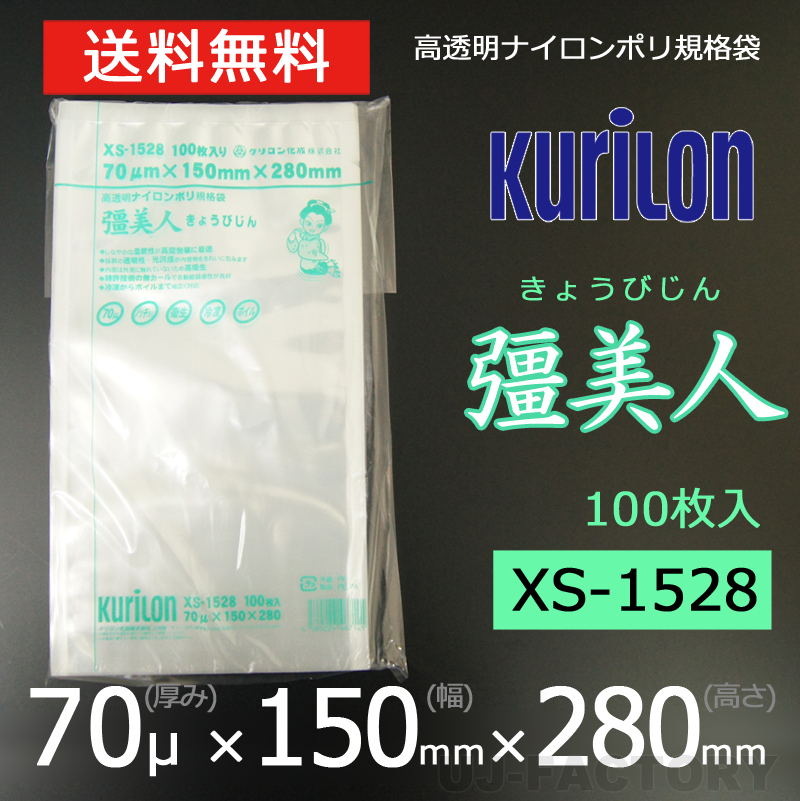 > 【即納!送料無料】彊美人 70ミクロン XS-1528 ナイロンポリ袋/真空袋 (厚み 70μ×幅 150×高さ 280mm)【100枚】★五層構造・三方規格袋