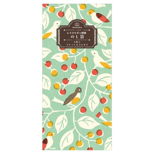 - WANOWA レトロモダン図案 のし袋 小鳥と実 3枚入 1359142 エヌビー社 金封 のし袋