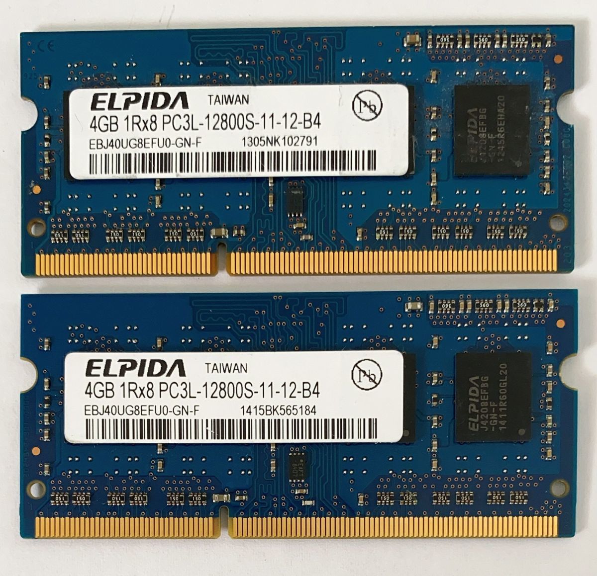 > ★送料無料★ELPIDA 4GB 1RX8 PC3L-12800S 4GB×2枚 計8GB ノート用メモリ★動作品★※在庫多数※AE222