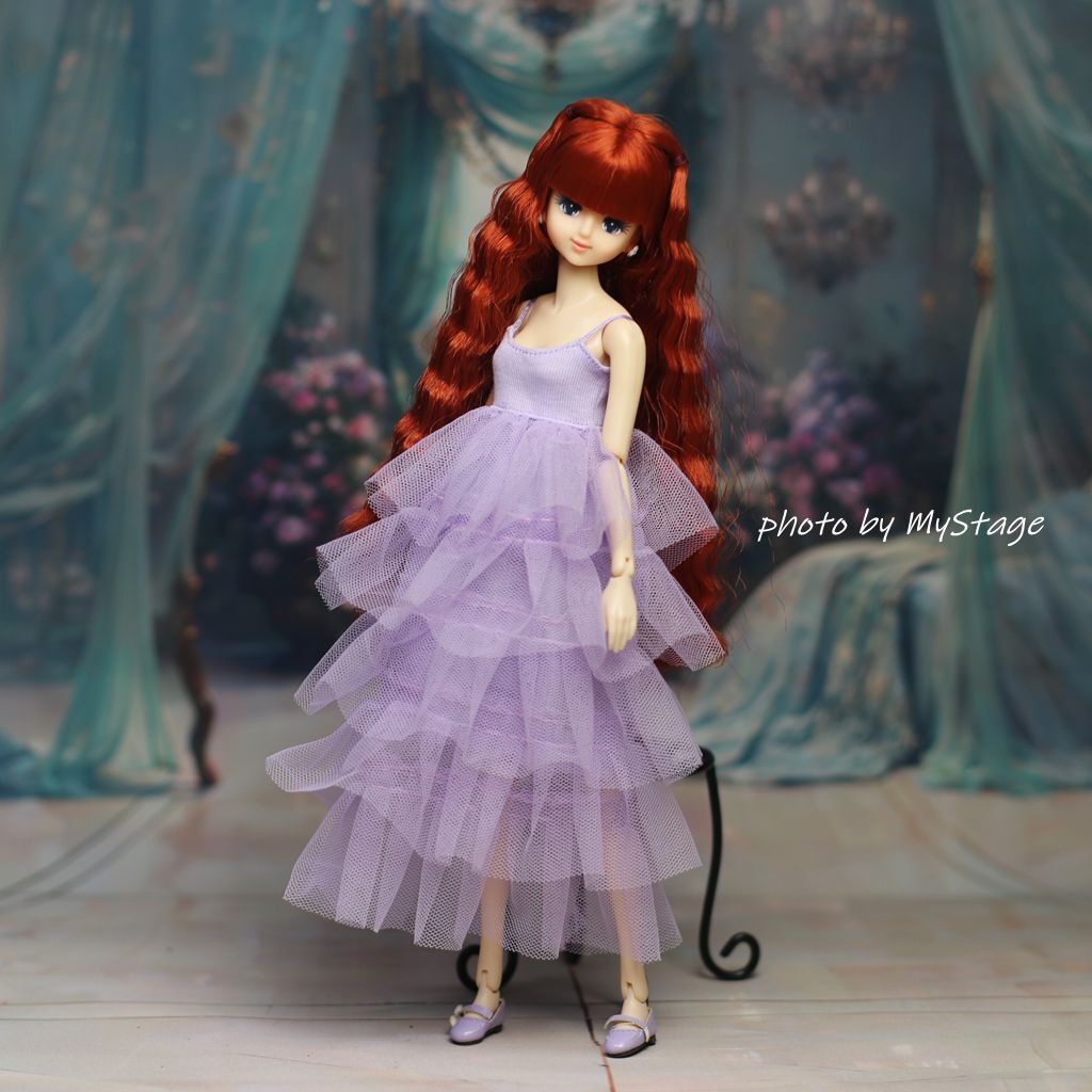- 人形服msdr-24-293 紫五段フリルチュールキャミワンピース (momoko、ジェニー、SAJボディ、OBITSUボディ)