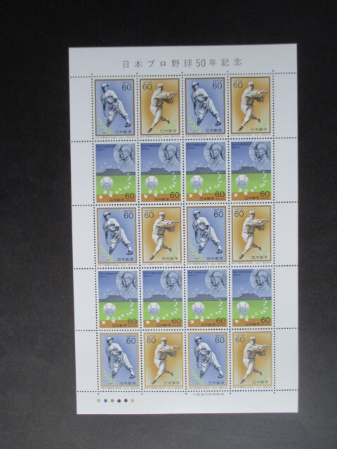 - 4-35 コレクター出品 日本プロ野球50年記念 記念切手★シート発売日1984.11.15