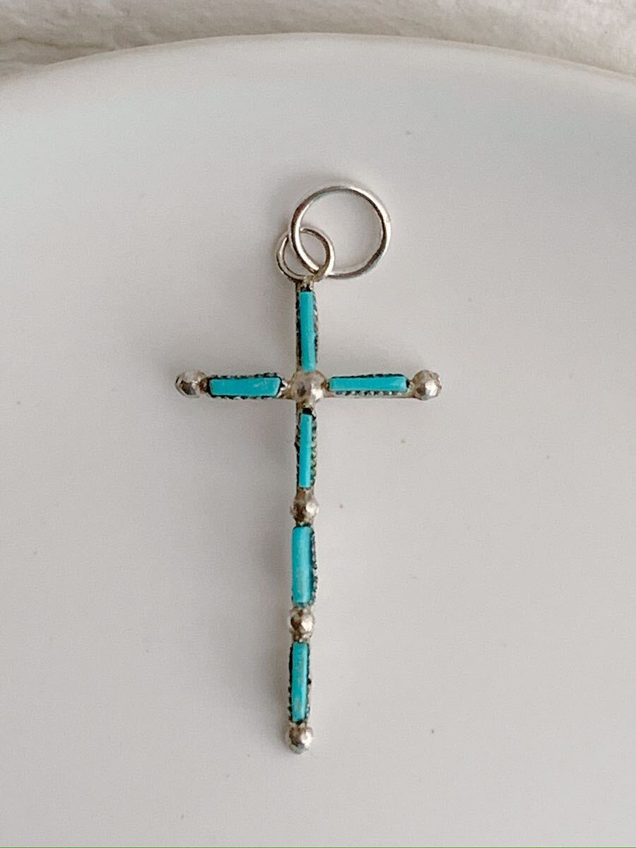 > インディアンジュエリー ペンダントトップ ZUNI ズニ ズニネックレス クロス 十字架 ターコイズ ペンダントトップ ニードル