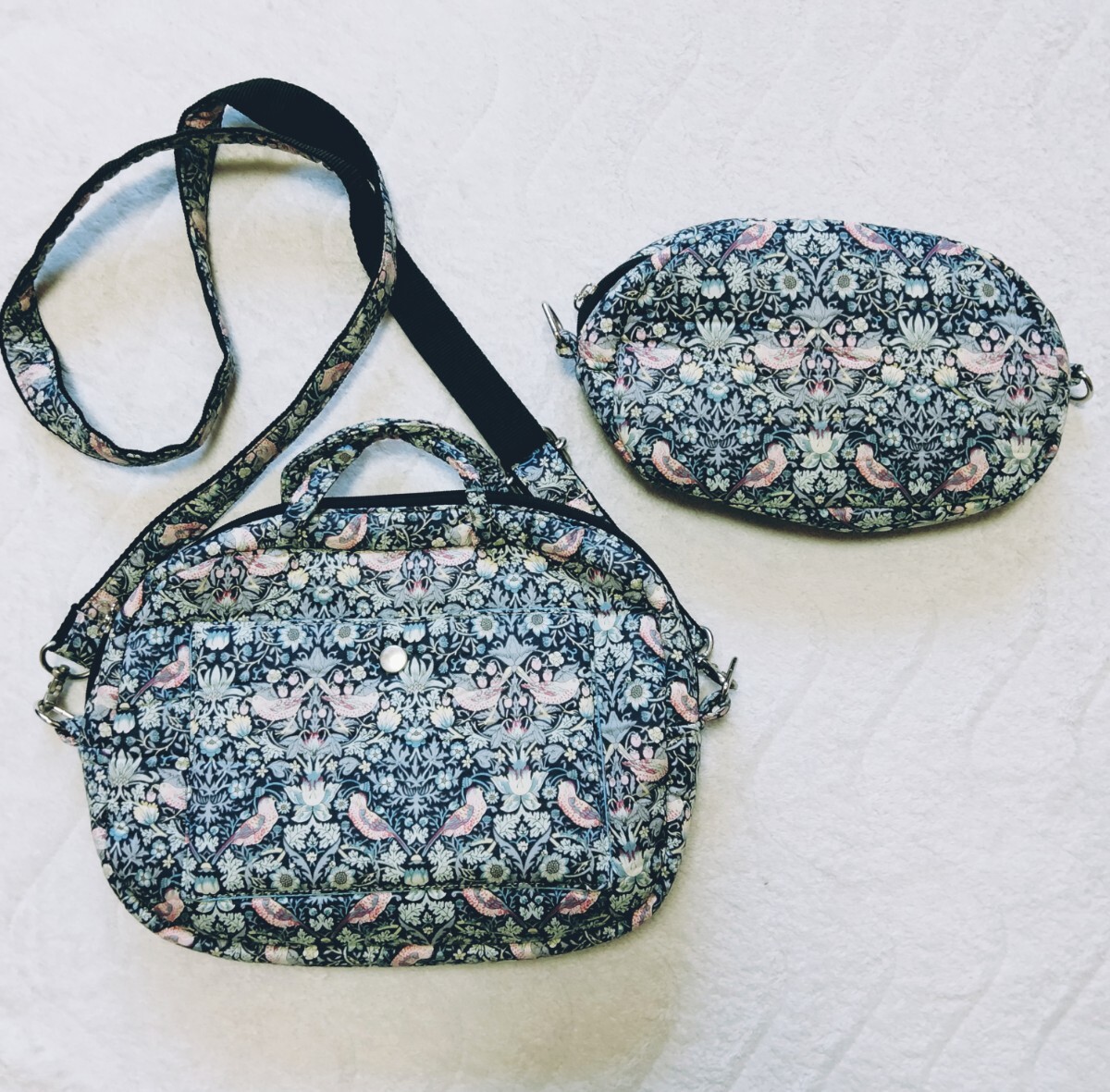 > 未使用*ウィリアムモリス いちご泥棒*リバティ*ショルダーバック*ミニバッグ*ポーチ*2個セット*ななめ掛け*ハンドバッグ*日本製*ポシェット