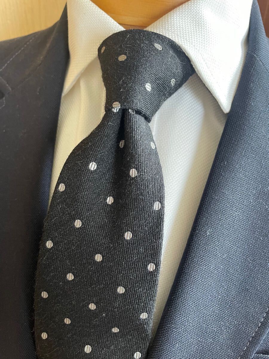 - 【美品】グリーンレーベルリラクシング ウールタイ大剣約8cm ダークグレー基調ドット ネクタイ