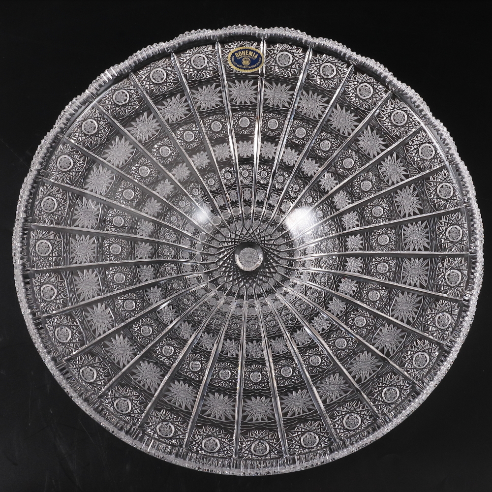 - ◆◇ボヘミアガラス ハンドカット クリスタルガラス大皿 約34.8cm 箱付 チェコスロバキア製 硝子切子 BOHEMIA GLASS◇◆