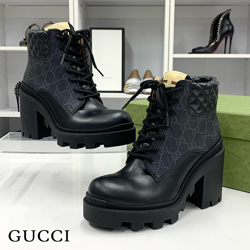 - M10776 グッチ レザー GGスプリーム ショートブーツ ブラック