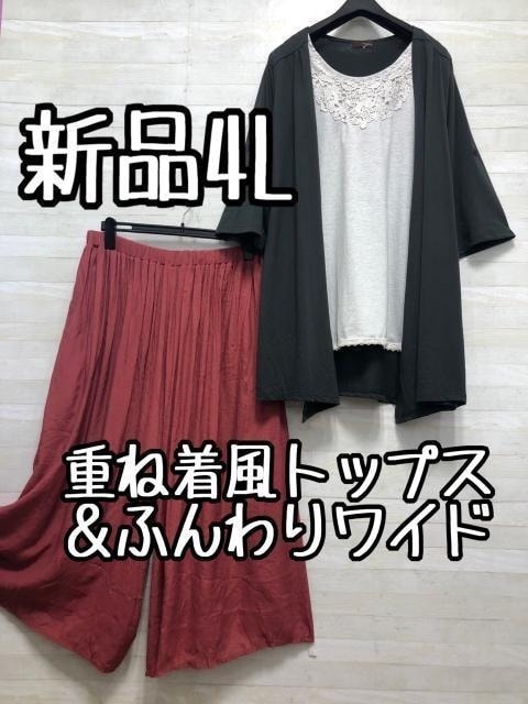 - 新品☆4L♪重ね着風カットソー&ふんわりワイドパンツ♪☆A116