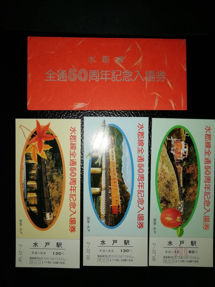 - 全通50周年記念入場券/水戸駅/ 昭和59年12月2日 入場券3種と封書 (K8全通)