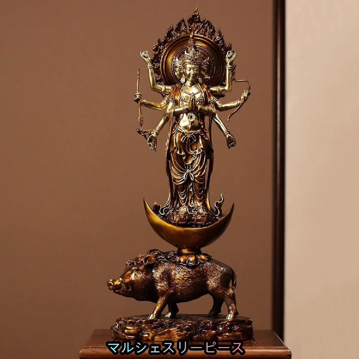 - 仏像【摩利支天立像】 真鍮製 (総高56cm、幅23cm、奥行き14cm) 守護神 仏像 フィギュア 諸天神 銅器