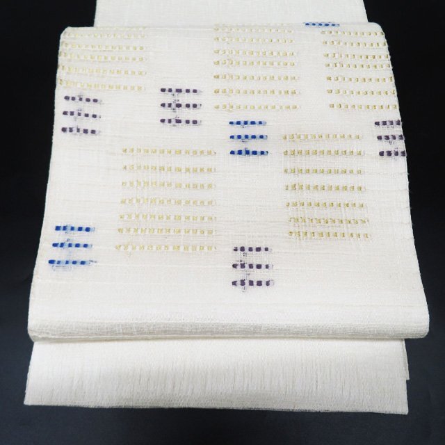 > 特選 袋帯 中古 正絹 お太鼓柄 えり善 ゑり善 夏物 3シーズン オフホワイト きもの北條 A1099-15