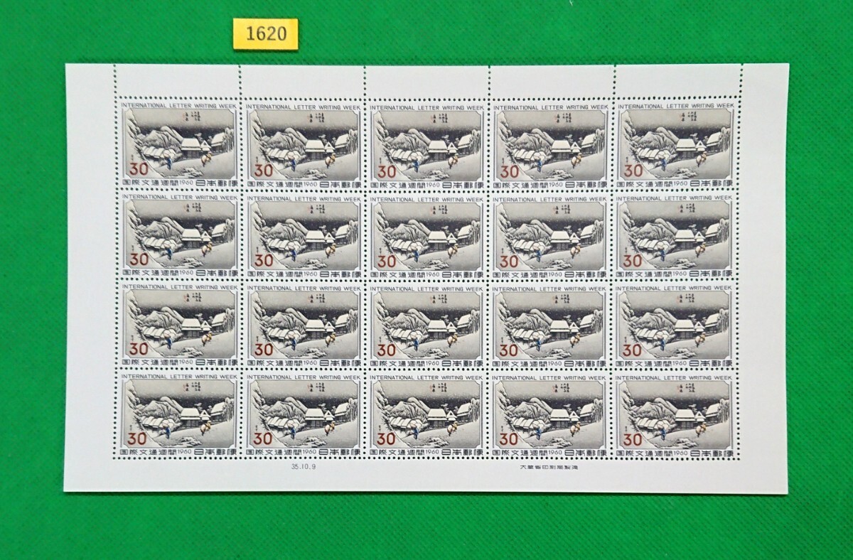 > 稀な高品質!極上美品!国際文通週間/蒲原/1シート/NH/シミ無/シワ無/糊艶良好/1960年/安藤広重/カタ価70,000円/№1620