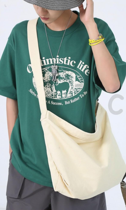- メッセンジャーバッグ キャンバス 軽量 大容量 無地 大きめ 帆布 斜めがけ ショルダー バッグ アイボリー