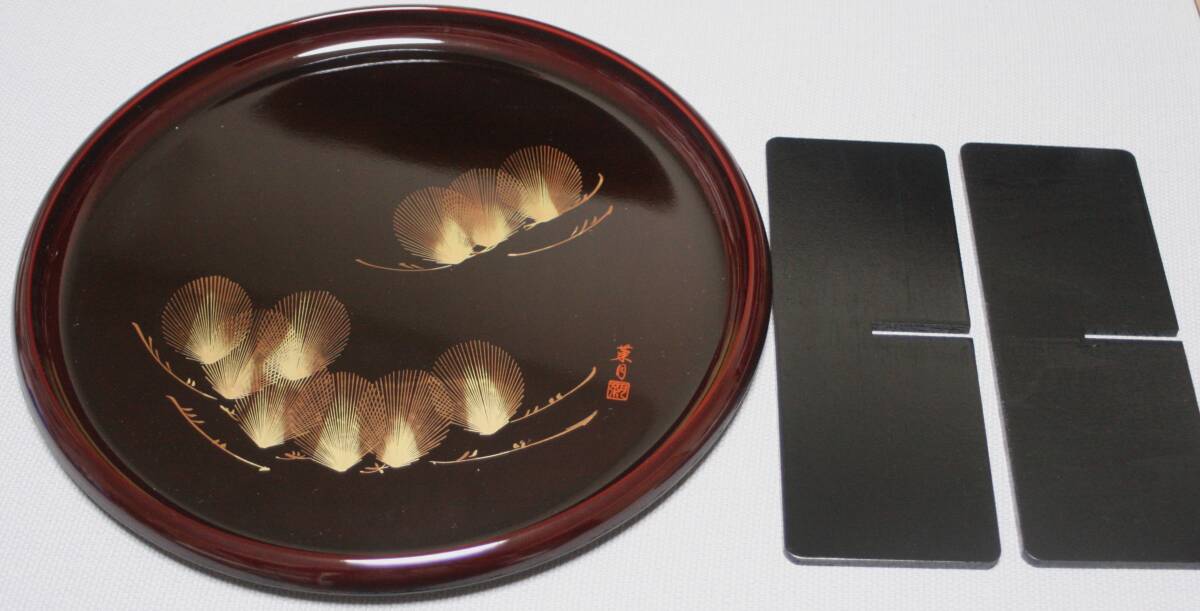 - ★レトロ品 溜登松 丸盆 直径30cm位 お盆 保管品★
