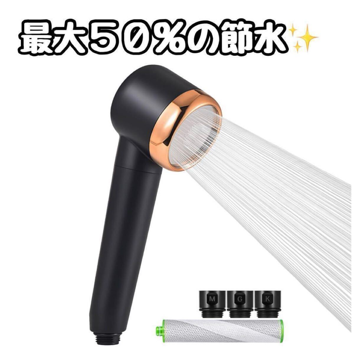 - シャワーヘッド 塩素除去 増圧 節水 水質浄化 美肌 保温 保湿 3種類アダプタ