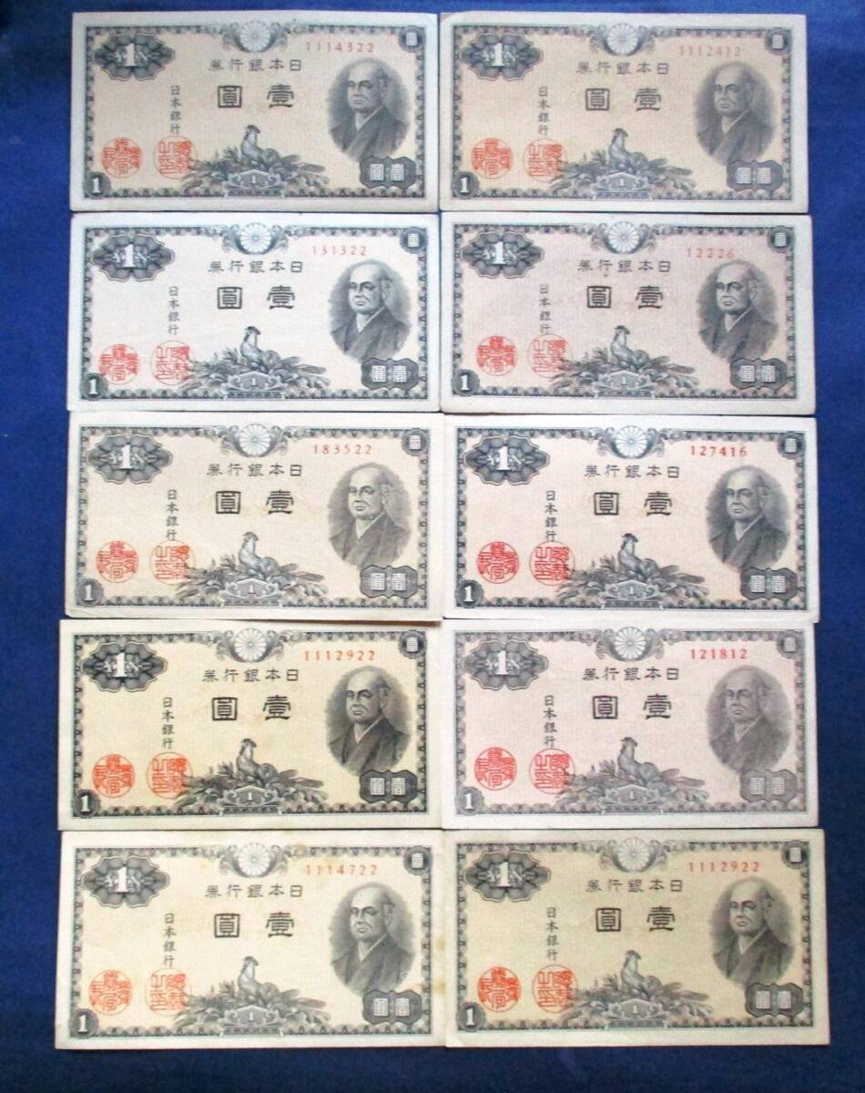 - 日本紙幣 大日本銀行券A号1円 二宮1円紙幣10枚未使用美品含む AB21 画像参照してください。