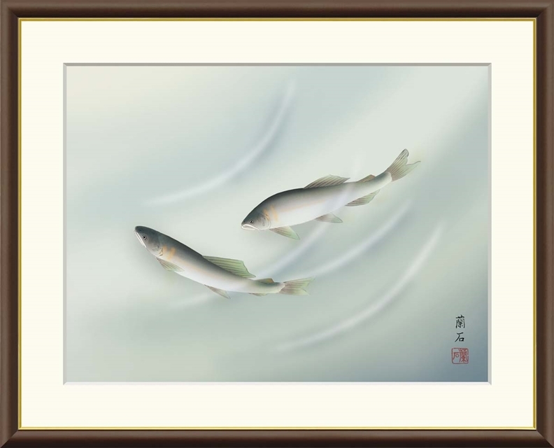 - 高精細デジタル額装版画 現代日本画 麗水の彩魚 鮎、錦鯉 「 鮎 」 サイズ F4号