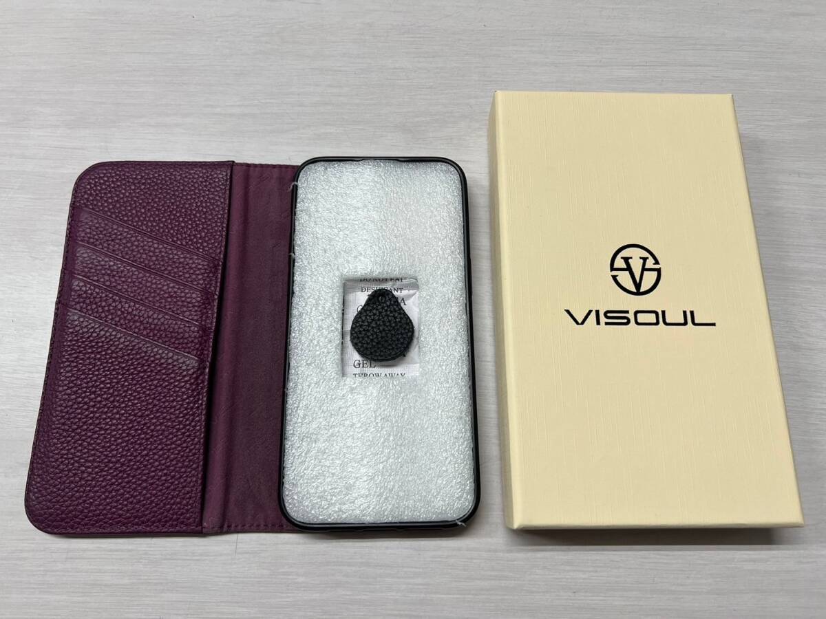 > VISOUL iPhone 15 ProMax アイフォンケース 手帳型 スマホケース アイホン15 ProMax 対応 中古品ブラック.パープル(2539)