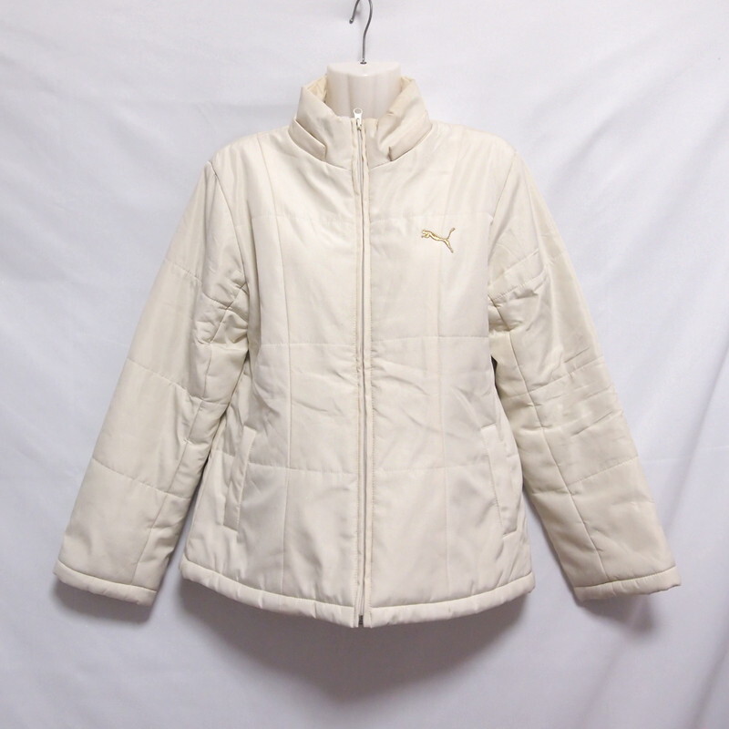 > 古着 レディースM PUMA/プーマ 中綿ジャケット ジップ スポーツ カジュアル 防寒 クリーム系