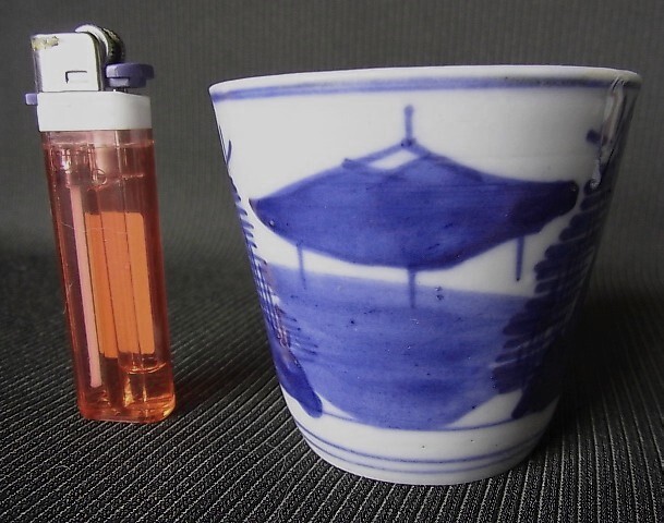- 【C0110】そば猪口 染付 山水 無疵