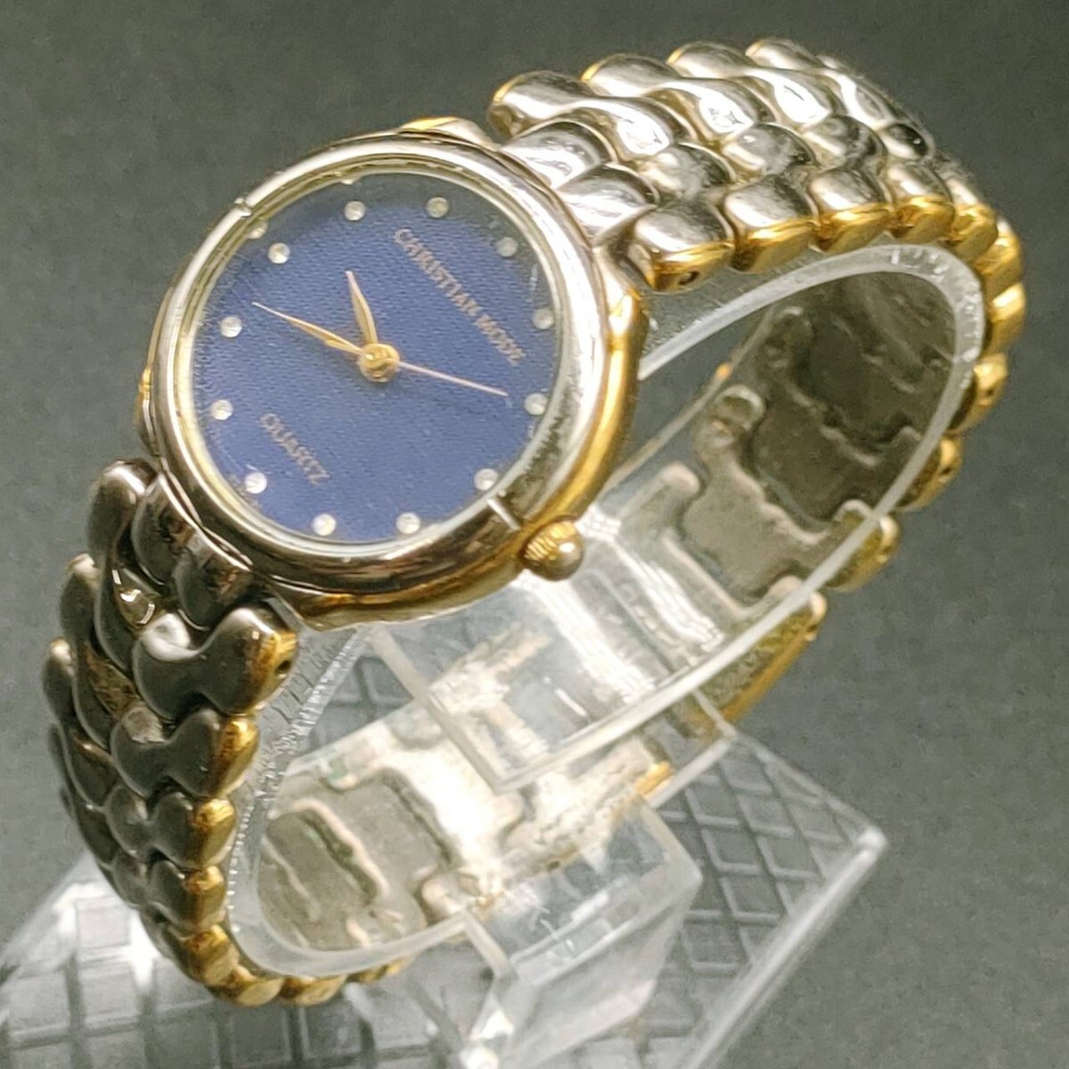 - T14 【レア】 christian mode クリスチャンモード 腕時計 クウォーツ 3針 ブルー文字盤 アナログ ヴィンテージ シルバー×ゴールド色