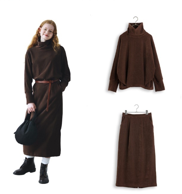 > 新品 定価3万 KELEN タートルネックトップス ロングスカート セットアップ 茶色