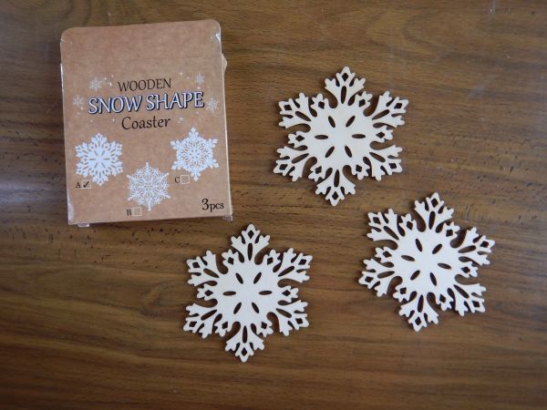 - WOODEN SNOW SHAPES COASTER 雪の結晶コースターA 101501 9X9CM三枚 未使用