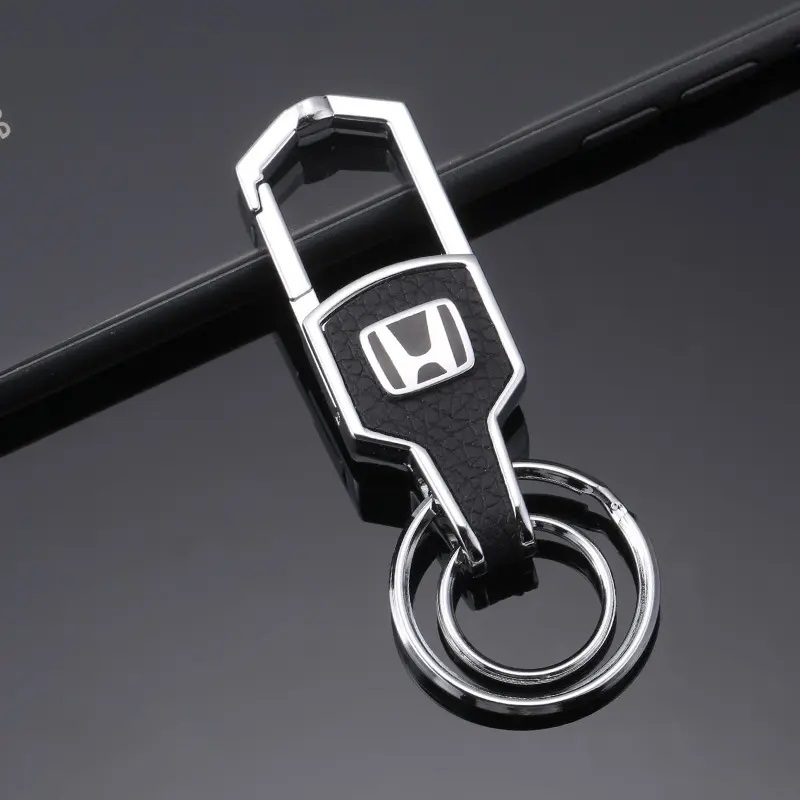 - HONDA カラビナ付き レザーキーホルダー BLACK