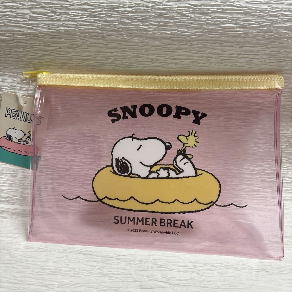 > 匿名配送 送料無料 未使用 海外限定 スヌーピー SNOOPY クリアポーチ ビニール フラットポーチ ウッドストック ビーチ 海 浮輪 夏 ピンク