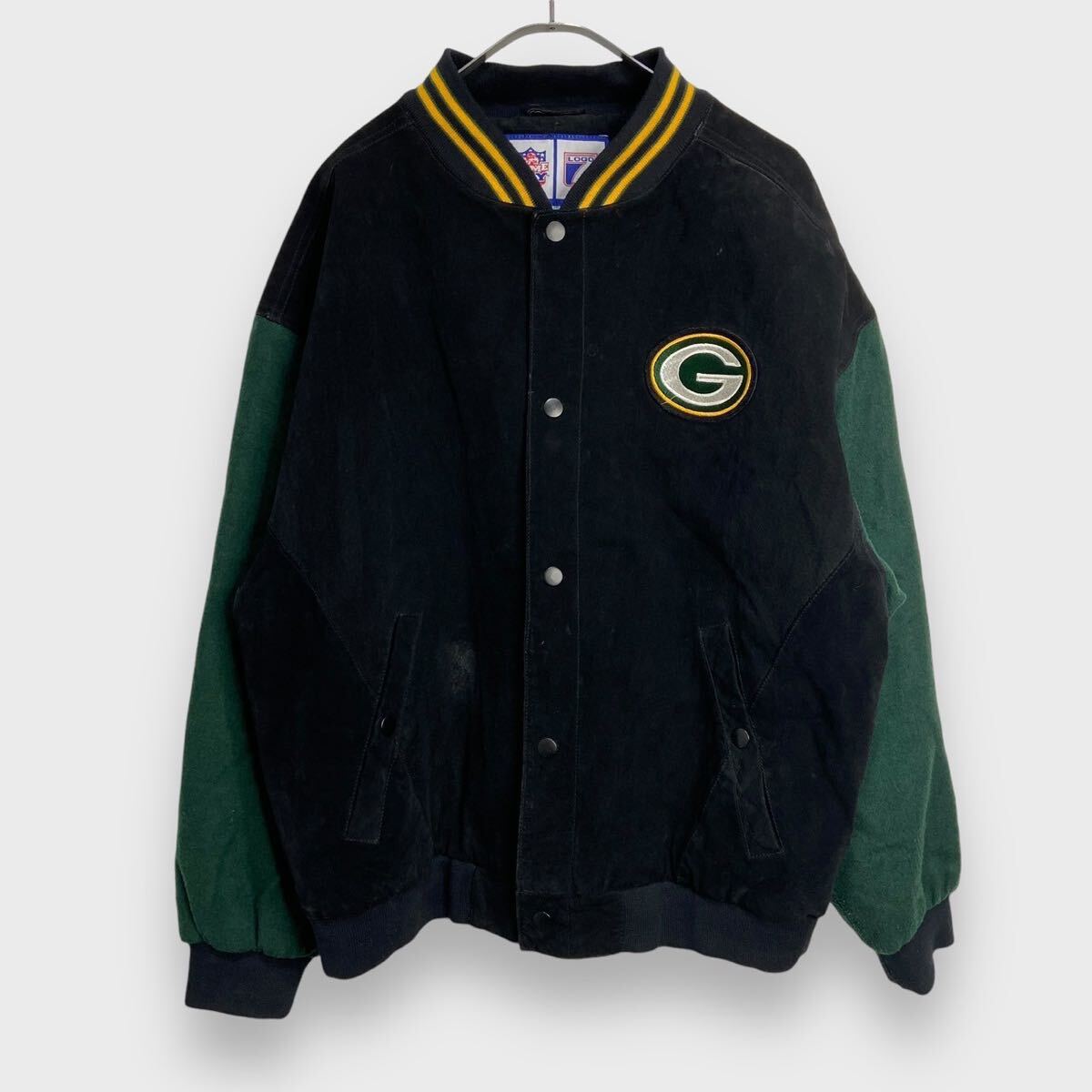 - 送料無料☆90s☆NFL☆グリーンベイ・パッカーズ☆レザー切り替えスタジャン☆ブラック☆L