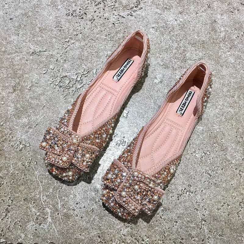 - 新品☆フラットシューズ ペタンコ パンプス スリッポン レディース ローファー キラキラ ビジュー 散歩シューズ ピンク 23cmサイズ選択可