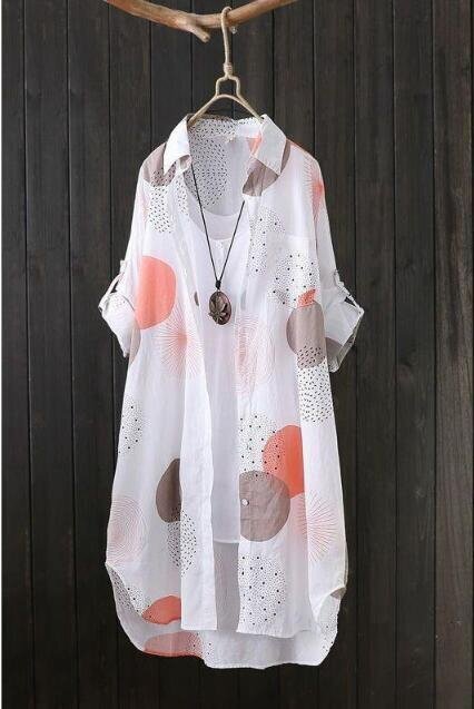 - 新品☆お色選択可 カジュアル ロングカーディガン きれいめ プリント柄 ブラウスシャツ オシャレ 薄手 長袖 ロング トップスピンク M