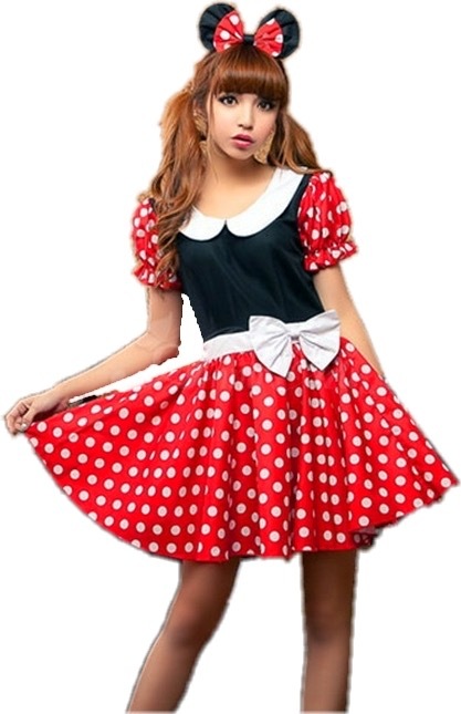 - 【新品】ハロウィーン クリスマス 仮装 ねずみ耳カチューシャ付き ドット柄ミニワンピース Lサイズ タトゥーシール付き コスプレ