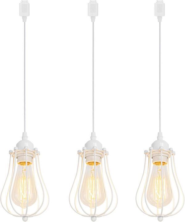 - ケビン 3個入り ペンダントライト コード60cm ダクトレール式 工事不要 E26口金 LED対応 アンティーク調 ホワイト【電球別売り】