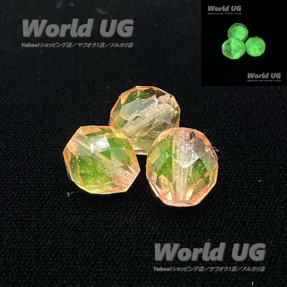 - ウランガラス 多面体ビーズ ピンク/黄色2トーン 12mm 3粒